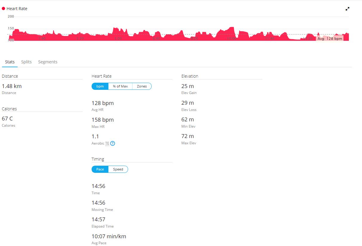 ちょっと走ると140に上がってしまうので、ゆっくり走っては歩き、走っては歩きで、キロ9~10分のペースに!(歩くのと同じ)